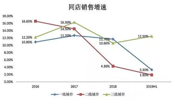 2019年,海底捞开启疯狂开店模式后,销售额和翻台率首次出现下滑。根据2019年报数据,海底捞一线城市同店销售收入增速由2018年的11.7%下降到2019年的 3.3%;二线城市销售收入增速由2018年的4.3%下降到了2019年的1.9%。