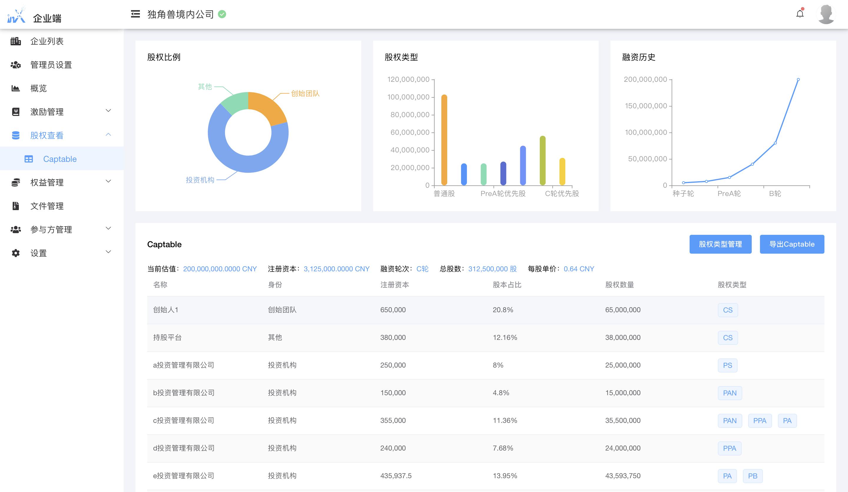 股权设计是随着商业社会不断分工细化衍生出的行业,过去的二十年都由律所或咨询公司完成。但由于传统的服务模式过于依赖个人经验,没有数据沉淀,服务周期冗长,价格昂贵等原因,只能为少部分成熟期的公司提供服务。而「易参」这类股权服务商的出现,对股权服务的知识、技巧和流程进行解构,以行业数据和算法辅助,让各个阶段、各种类型的企业都能以低成本高效率的方式,享受到相应的服务。在美国市场,第三方股权服务已经是成熟的产业,「易参」的对标公司 —— Carta,是美国一级市场最大的权益管理及交易平台。该公司已于 2019 年完成 3 亿美元的 E 轮融资,估值 17 亿美元,至今有14000家企业用户,管理数千亿的权益资产。