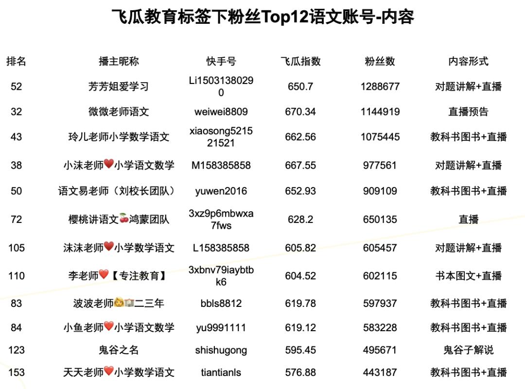 快手上有一个特别有意思的现象,教育类标签下排名靠前的语文账号基本都是自成一体的个体老师/机构,日常发布的视频内容多是几秒的直播预告,但是就连这直播预告的均播放量都在5w左右,并能收获一堆的用户互动评论,可见用户的粘性之高。