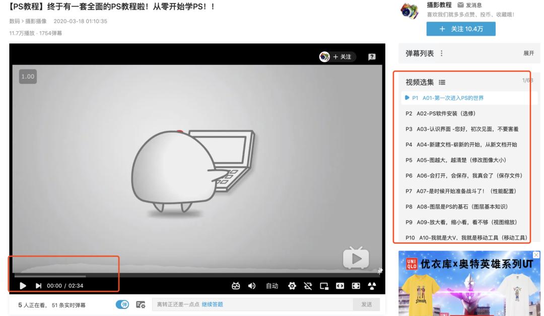 而B站的学习资源和内容排布就能满足学生的学习需求。在B站上搜索想要学习的关键词,出现的都是打包好的成体系的内容,视频有进度条,可快进自主掌握学习的节奏,右侧有学习列表,学什么一目了然,B站的学习区像极了有诚意的青春课堂。