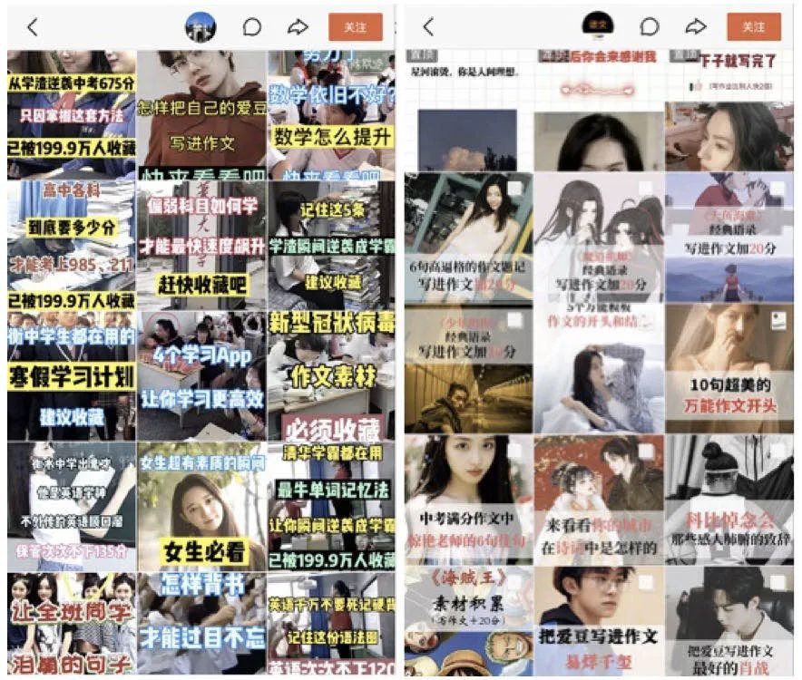 短视频平台聚集的超亿用户池,让教育行业看到低成本获客的可能。教育行业将短视频当作获客增长渠道的代表账号有快手上的高途和跟谁学系列账号,他们铺设的矩阵账号内容多以ppt/影视混剪为主,生产成本比起真人拍摄和剧情演绎类账号低、还高效。