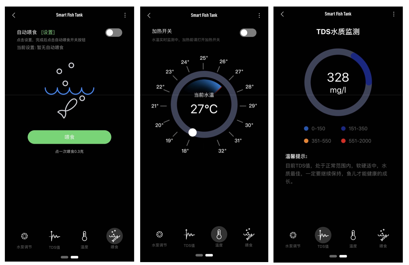 目前画法几何的产品以小型鱼缸为主,第二阶段陆续上线支持智能控制的产品(目前有两款),鱼缸里的环境数据,比如温度、水质情况、是否需要清洁等都可以在手机上显示,还支持自动投食。未来画法几何的产品也会围绕鱼,做各种关联产品,比如水、营养液、药物、水草等。