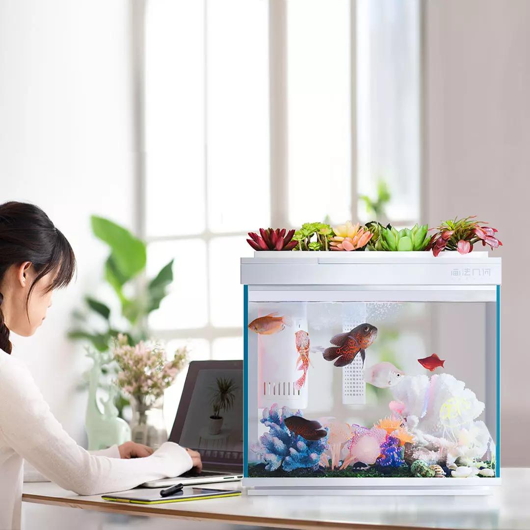 36氪最近认识的公司「画法几何」,就是针对水族市场的消费者需求,设计智能一体化鱼缸产品。画法几何首款鱼缸于2019年初上线,去年11月新款产品登陆小米有品,截至去年底销量突破10万台。公司目前共有4款产品,以桌面放置的场景为主。