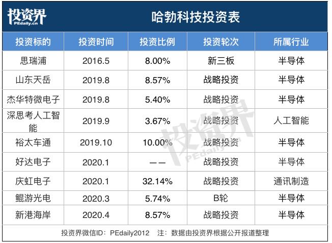 投资界根据公开的信息梳理,这一年来,哈勃投资相继投资了9家企业。分别为:新港海岸(北京)科技有限公司、山东天岳先进材料科技有限公司、苏州裕太车通电子科技有限公司、上海鲲游光电科技有限公司、深思考人工智能机器人科技(北京)有限公司、无锡市好达电子有限公司、杰华特微电子(杭州)有限公司、庆虹电子(苏州)有限公司、思瑞浦微电子科技(苏州)股份有限公司。
