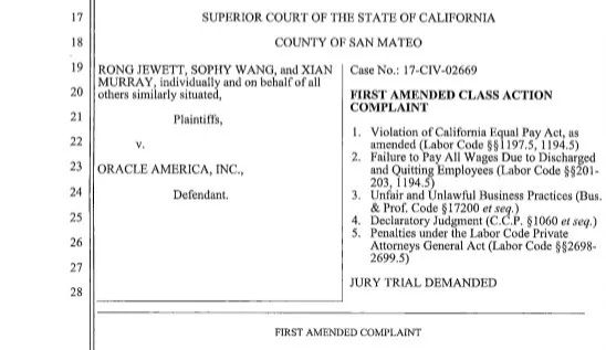 这场诉讼开始于 2017 年 8 月,Oracle 公司的项目经理、应用开发工程师 Xian Murray,Sophy Wang 和 Rong Jewett 起诉 Oracle 长期存在男女同工不同酬的性别歧视现象。