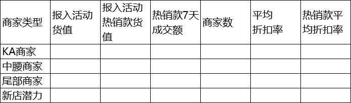 5.类目商家线:对活动进行商家招商及商家商品盘货,制定商家大促目标,活动商品结构把控,跟进活动素材收集,指导培训商家了解活动;