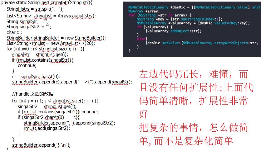 左边的代码可以说没有任何扩展性,需求稍微一变化,这些代码就是废品,而右边不但简单易懂,而且扩展性非常好,需求变化了,只有稍微调整一下即可。