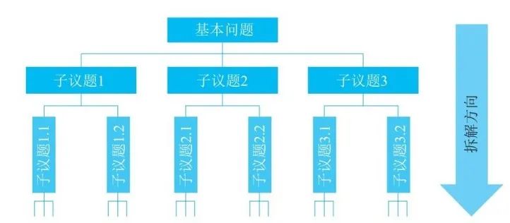 自下而上法和盖房子一样,就是从议题树的底层往上搭建,也就是从最小一级的议题开始一层层往上添加(总结归纳),最后指向初始的基本问题(封顶),而且下面层级的议题数一定大于上一层级。