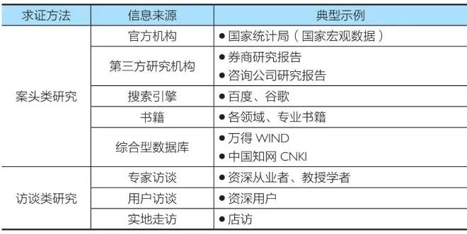 很多人在解决问题伊始,面临的最大问题就是不知道去哪里找到有效信息,咨询公司实际上已经积累了一套标准的收集信息的方法论,一般情况下,我们可以通过案头和访谈两个渠道来迅速获取信息,下表列出了案头类研究和访谈类研究的主要手段。