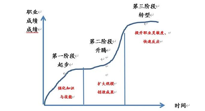 根据对职场中成千上万人的简历阅读,以及有幸与很多职场人的共处,以及亲身体验和观察的归纳总结,我将职业通道归纳为3个主阶段组成的S曲线。