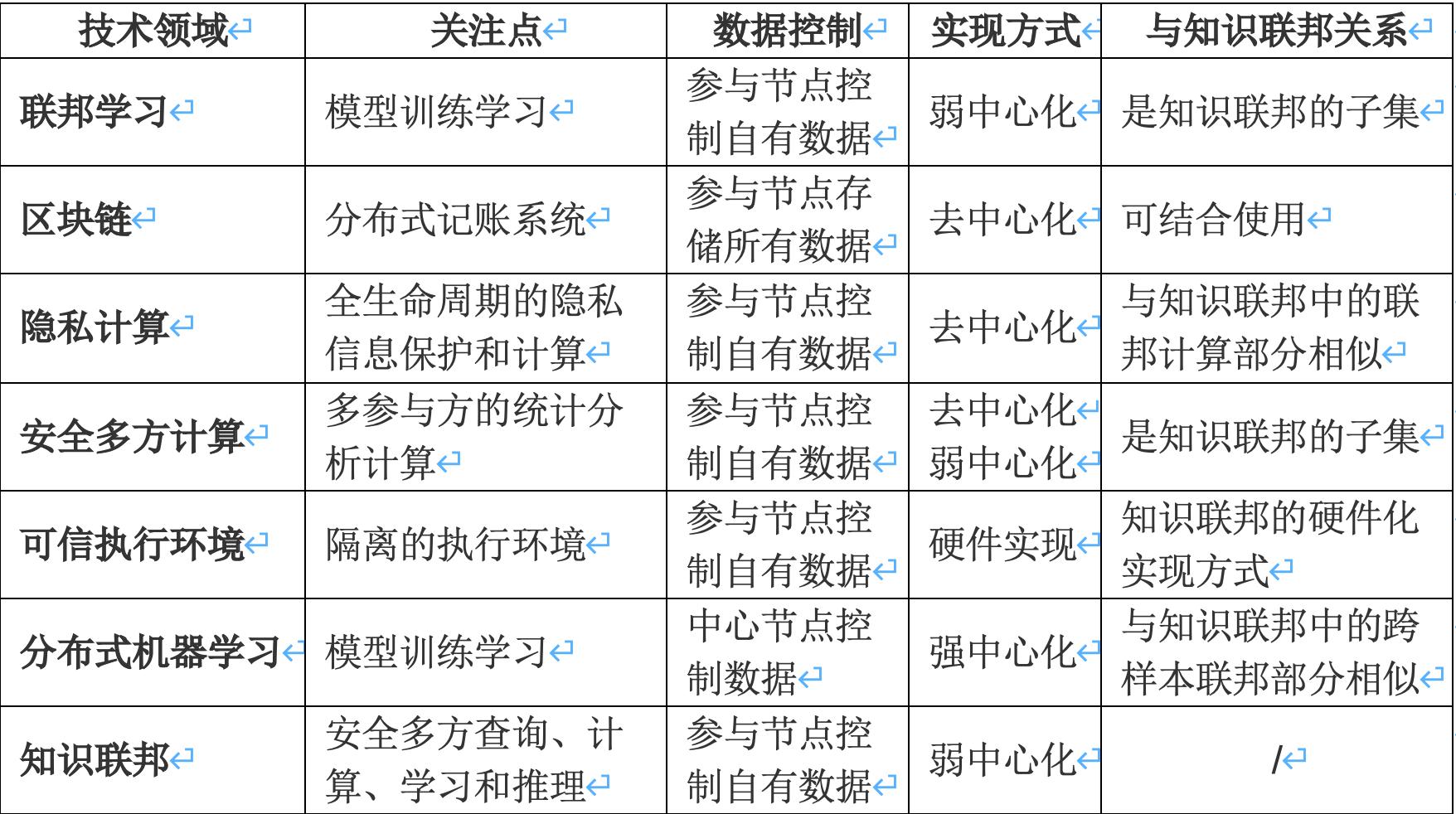 表2. 知识联邦与相关技术