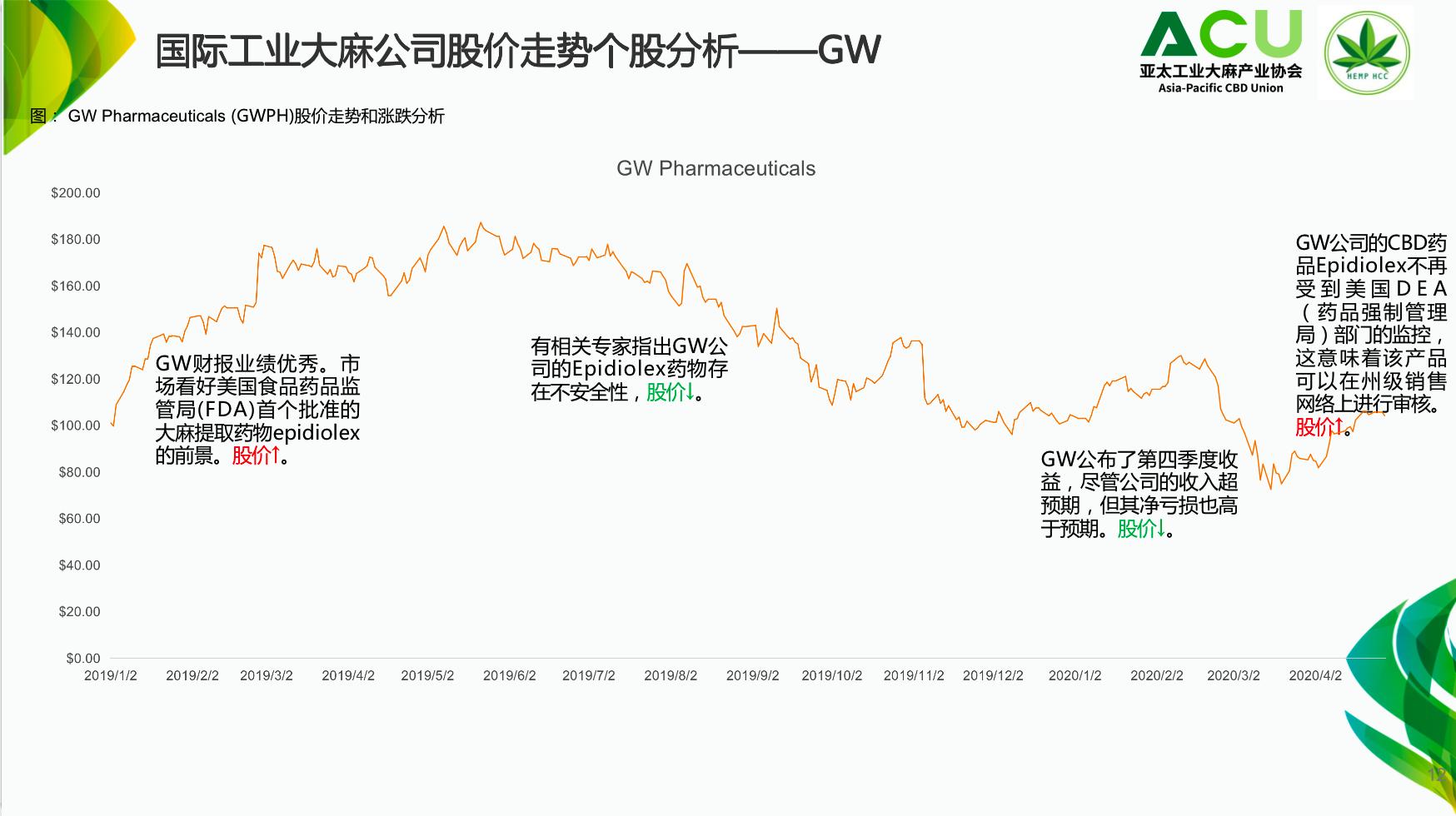 我们看到,包括很多PGR公司,如Cronos、Tilray、GW,GW是最好的一个标的,因为它已经看到了销售收入,同时它的商业模式已经被理顺过了。像它们的epidiolex药已经不再受到美国FDA的药品强制管理局的监控,意味着该产品可以在州级别的销售网络里面大范围的销售,未来这个产品的销量还会进一步的放大。从GW的产品每月的环比都是在一个大幅地增长,从年报,我们看到了它的同比数据,无论收入,还是减亏都有一个大幅地改善,所以它在国际走势里面走的是最好的。