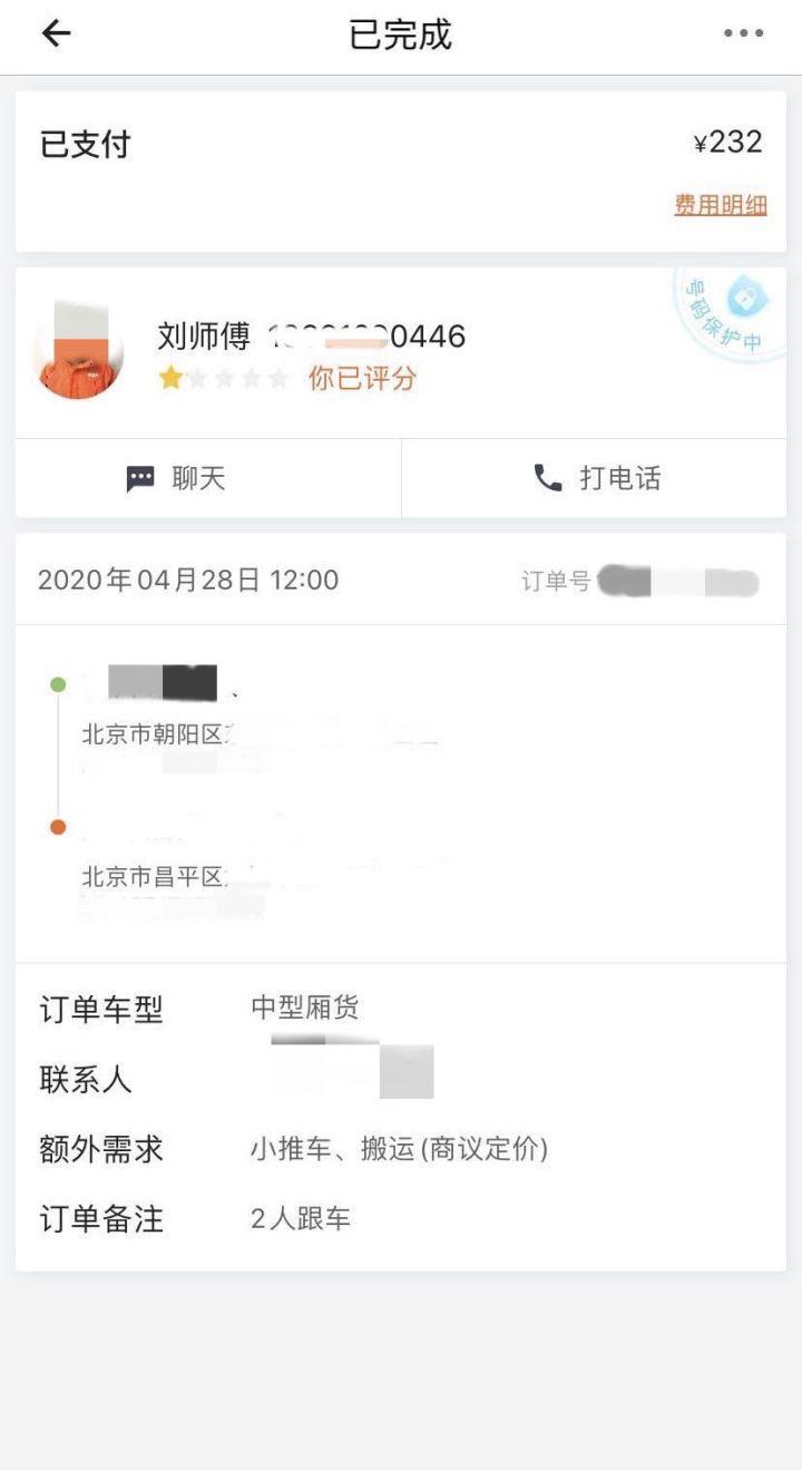 4月28日,刘语熙使用货拉拉搬运包括电视机在内的8件家具,在选择了中型厢货的货运类型后通过app支付了232元的出车费,由于不确定搬运服务的具体规则,关于搬运人工费,她选择了“搬运需求与司机商议定价”。
