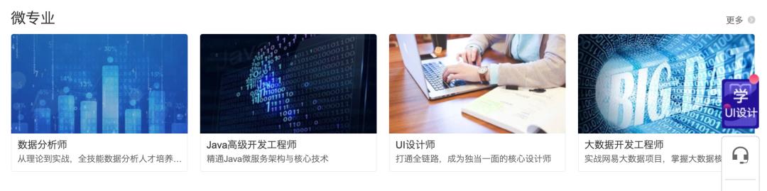 “微专业”也都是直接冠以岗位名称,“数据分析师——从理论到实战,全技能数据分析人才培养……”“UI设计师——打通全链路,成为独当一面的核心设计师”,仿佛学完这些课程,就能直通互联网大厂offer。