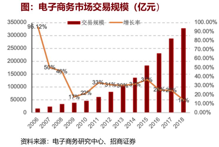 中国电商市场经历了从2006年至 2018年的快速成长,交易规模从14400亿元增长至325500亿元。