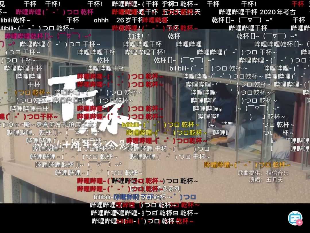 而弹幕刷的最多的一句话是:“哔哩哔哩(゜-゜)つロ干杯~”