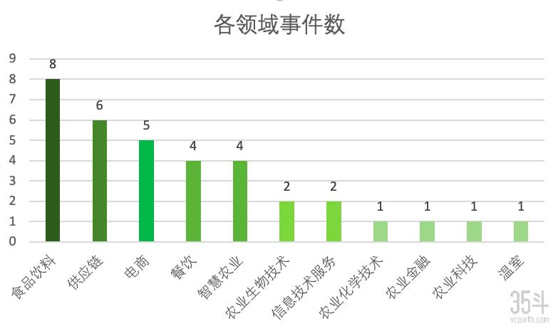 从领域分布看,食品饮料领域的融资事件数最多,共有8起;供应链居第二,共有6起。在交易金额方面,供应链领域的融资总额最高,达到1.98亿美元,主要源于韩国零售及供应链企业Market Kurly的1.5亿美元高额融资;电商领域的融资总额排第二,约8000万美元。