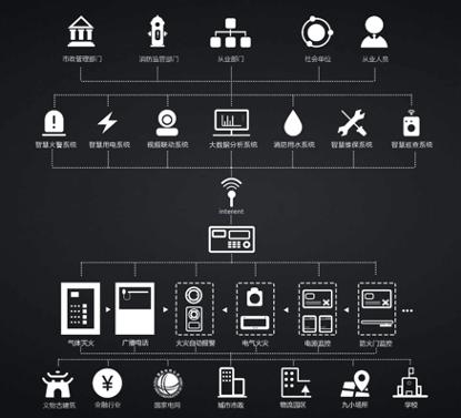 通过各版块,鼎信智慧消防物联网管理平台可以将分布在各地建筑物内独立的火灾自动报警系统、电气火灾系统、电源监控、消防水系统、数字视频联动监控系统等通过新一代物联网、大数据统计分析挖掘等技术手段,并综合运用地理信息技术,在监控中心对所有联网建筑物的消防设施实时监测,发现异常系统自动发出报警并通过APP、短信、电话等方式将报警信息推送给主管单位、消防部门、维保单位等相关人员,实现早发现、早处理,提高火灾监测的实时性和及时性,以便及时响应和处理。最终实现对建筑消防设施、消防从业人员的有效管理,最大限度保证消防系统的稳定运行。