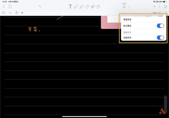 录音也支持倍速播放,这样上课的时候如果有录老师讲的内容并且在某一部分记录了笔记,那播放的时候就可以实时呈现;
