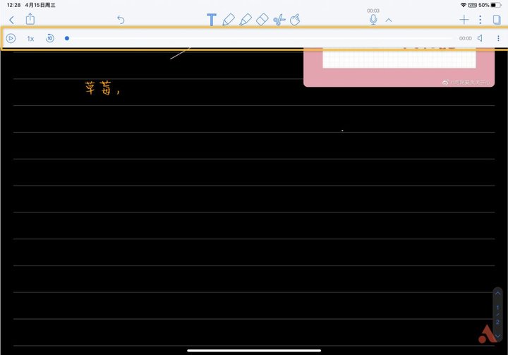 录音是《Notability》的特色功能,它可以实现边录音边记笔记,播放的时候会将声音与文字对应起来,展示一下效果。