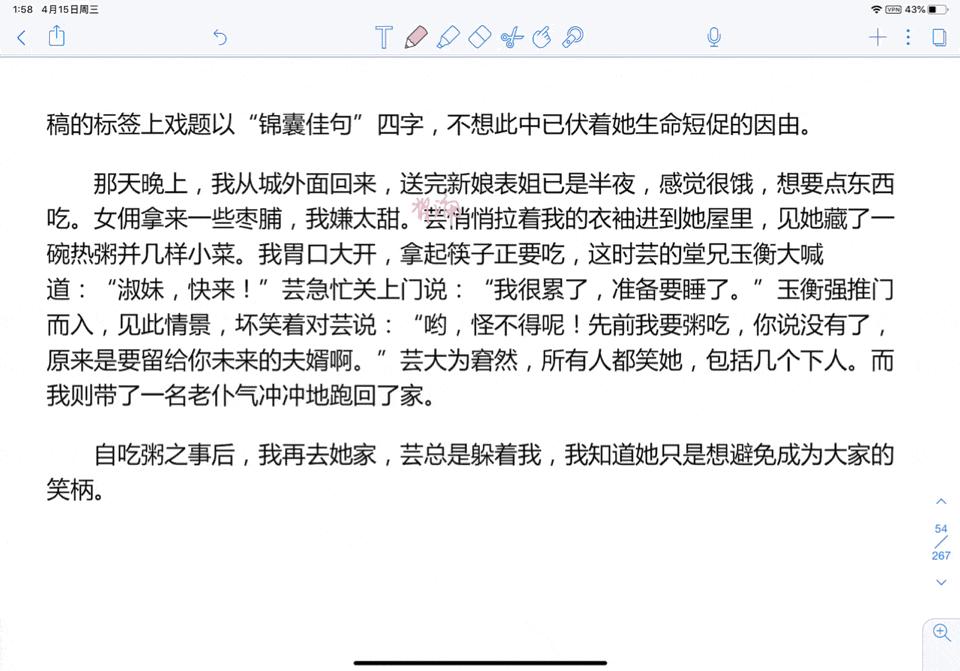 最后是搜索功能,我们可以利用搜索功能来查找需要关注的重点内容,以导入的《浮生六记》为例,我分别在 54 和 63 页增加一个自己的备注:背诵,那么在搜索的时候我直接搜索背诵,可以看到有标注的这两页出现了,除了手写也支持搜索文本,怕自己的字太潦草搜索不精准可以直接键入文本,这个功能可以用来背诵课文、制作数学错题本等等。
