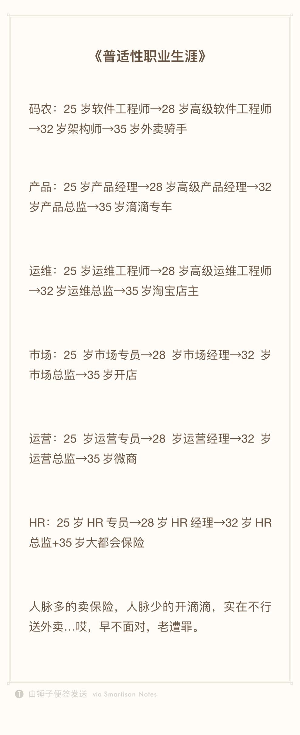 前几天有一个截图被大家广泛传播,标题是“普适性职业生涯”,内容如下: