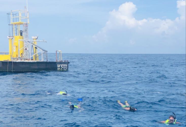 海面上,还有一个直径 33 英尺的浮筒,它能通过电缆、软管、绳子,为实验室提供空气、电力、高速互联网和电话服务。