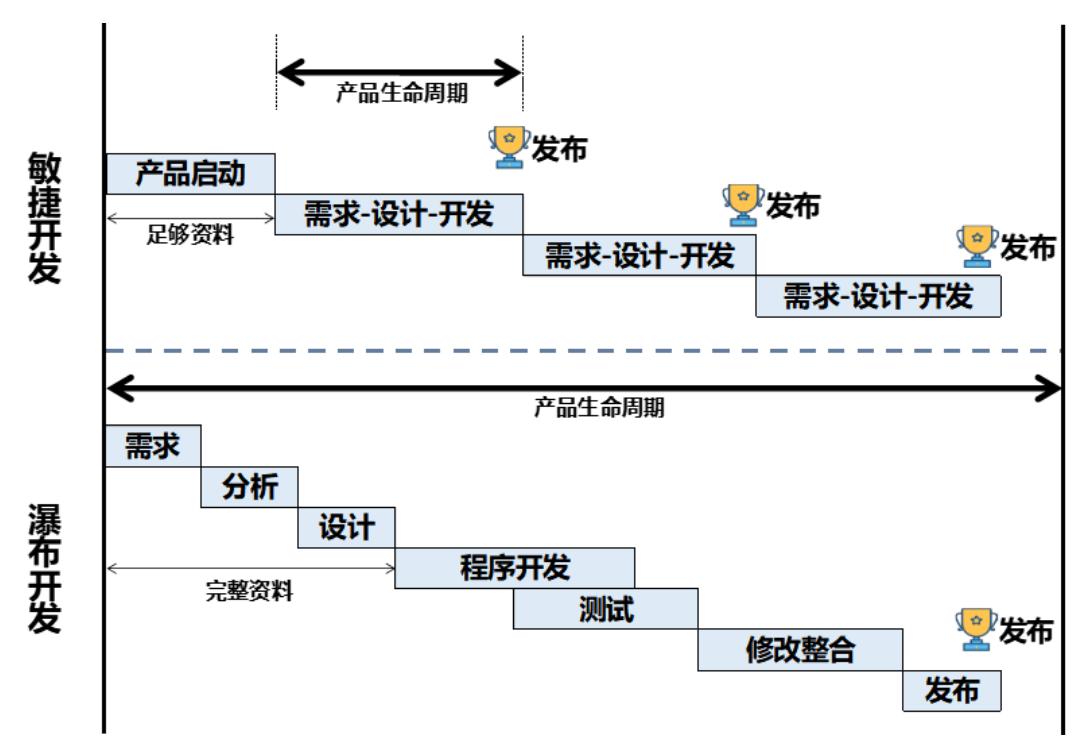 产品开发一般情况下分为瀑布式开发与敏捷开发2种方式: