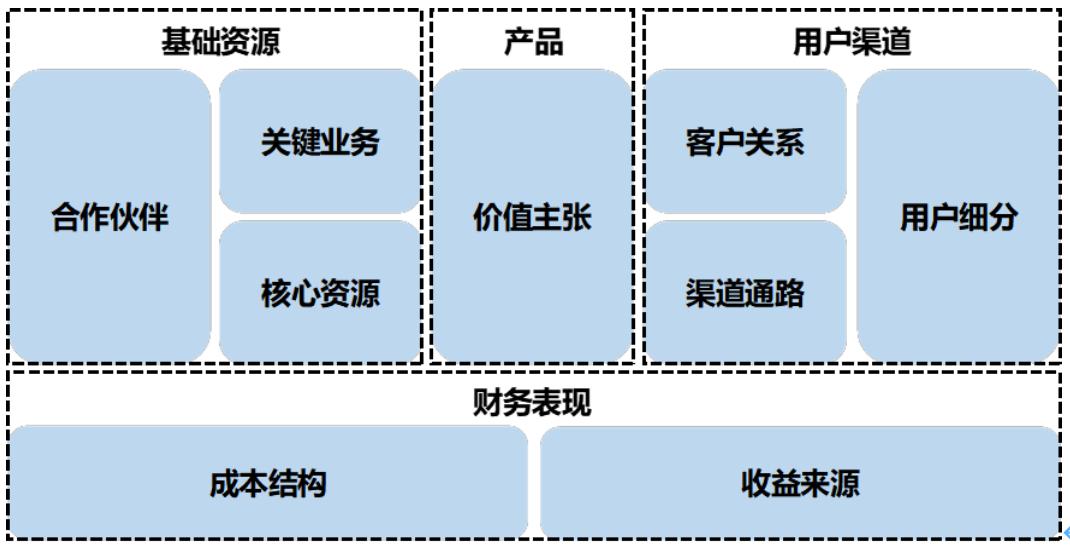 商业画布是最为产品经理所熟知的方法,由上述9个方面内容构成。商业模式画布是帮助个人和企业分析如何创造价值、传递价值、获得价值流程和关系的基本工具,更体现了一种商业领域思维方式,它能够展现企业在商业链条中的地位。