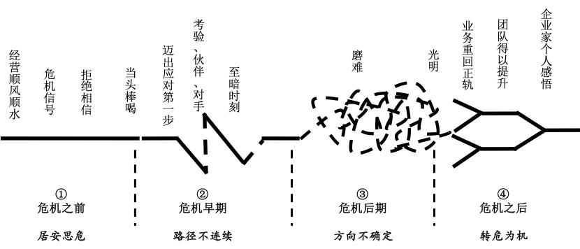由于危机往往给企业家带来发展路径的不连续性,他们会经历自己事业中的至暗时刻,而这些至暗时刻往往也是企业家英雄之旅的重要转折点。此后,企业家还会经历危机带来的种种磨难,并在克服磨难之后,走向新的光明。