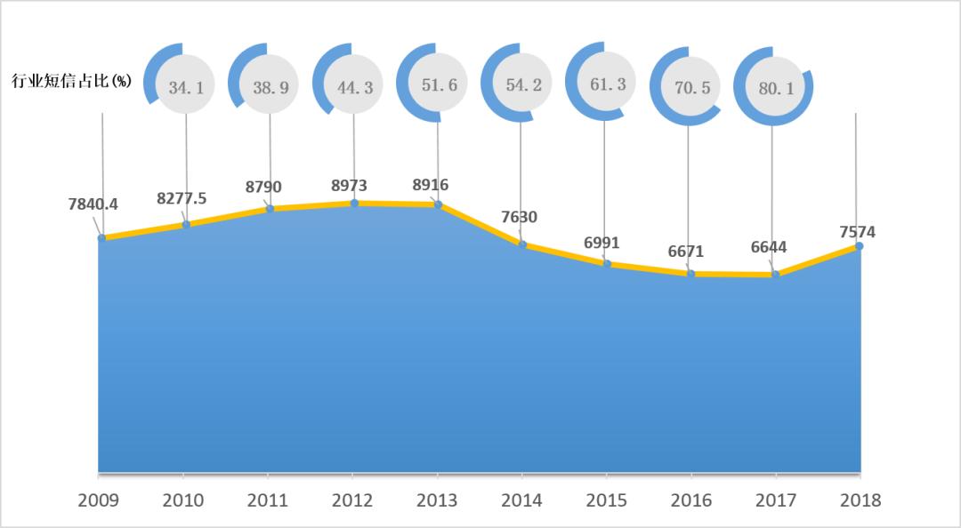 再者,近两年行业短信(服务登录、推送、营销推广)应用增长迅速,运营商行业短信业务量和收入双升( 2018年行业短信占比已超80%,收入同比增长9% ),但目前指纹、面部识别等解锁方式的盛行,以及短信平台营销方式的单一化,后续增长显然后劲不足;2019年,全国移动短信业务量比上年增长37.5%,增速较上年提高23.5个百分点;但移动短信业务收入却与上年持平。运营商力求尽快拓展行业短信体验及使用场景。