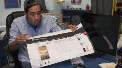 不仅从纸直接蹦出一个手机,还直接扔进了电脑里形成虚拟的天猫页面。
