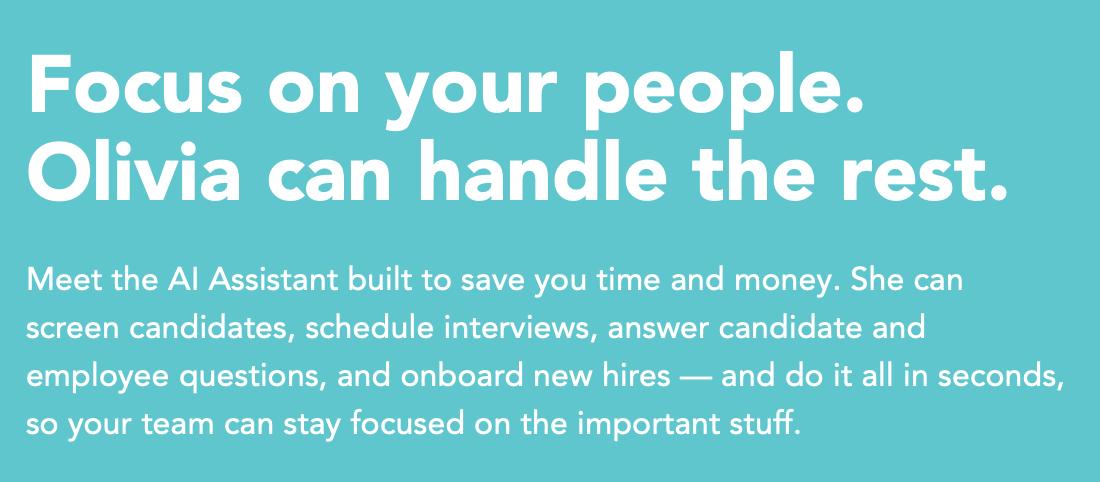 Olivia 可以回答候选人和员工的日常问题,筛选潜在的客户和职位申请人,自动安排面试,收集反馈的信息,简化入职流程和主持一些线上会议。只需几秒钟,Olivia 即可完成所有工作,使企业团队可以专注于其他重要工作,充分帮助客户企业节省了时间和金钱。