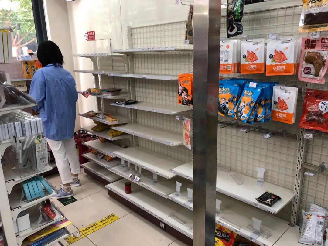 收银台排起长龙、空置货架随处可见,热食不再供应,消费者的询问与店员的回应声交织在这间不足50平方米的门店中。