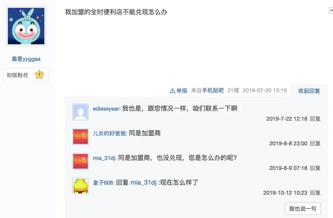 经了解,蓝堡店或为全时加盟店而首经贸大学店为官方直营店,而据“全时”吧、“全时便利店”吧相关信息显示,此前部分加盟店或存在无法兑现情况。