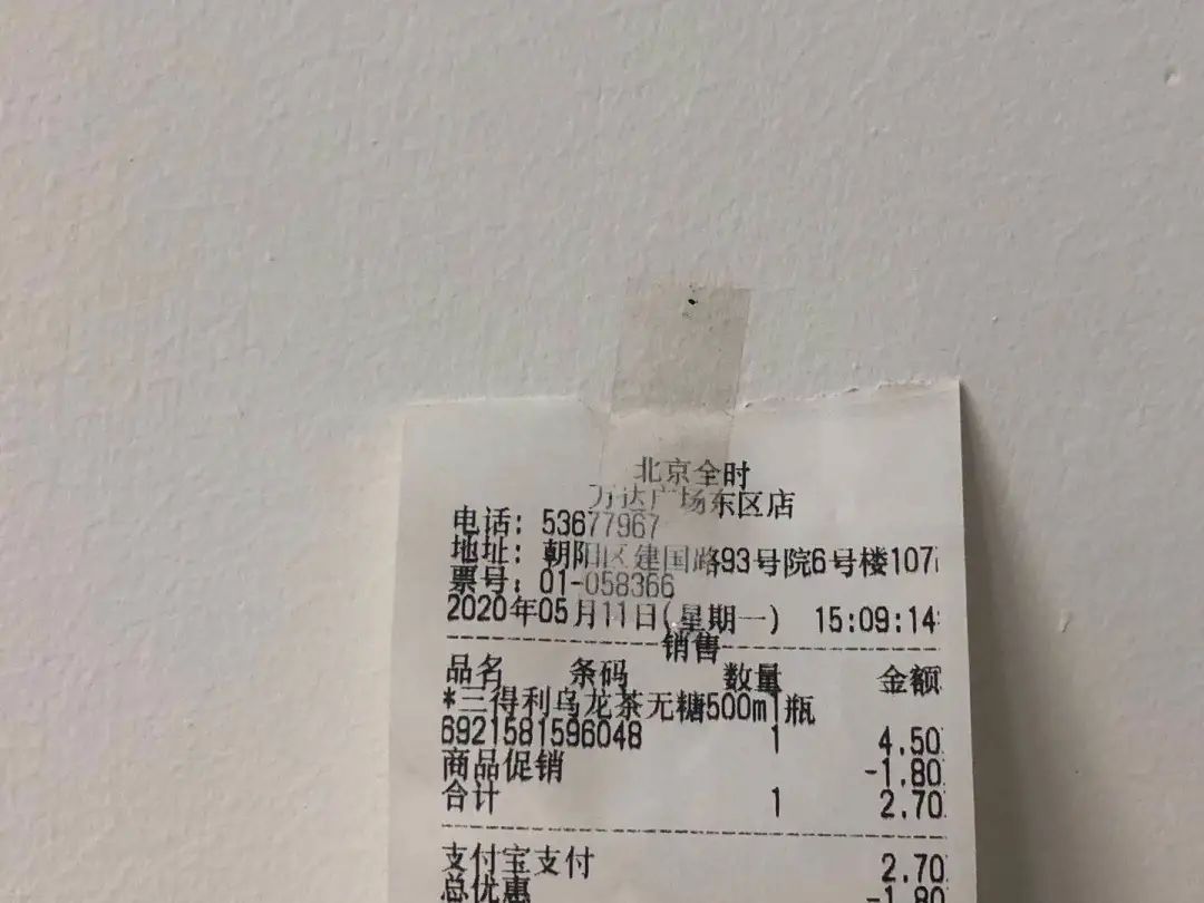 15点16分,来到仅一街之隔的万达广场东区店,在向收银员咨询促销何时开始时,该收银员并未做出正面回答,而是用手势比出“数字六”,寓意六折。随后,河豚文旅以2.7元购买了一瓶原价为4.5元的茶饮料。