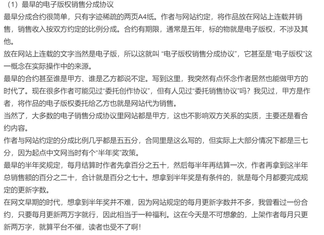 除了上述这样关注合同本身的,也有站在更高的层面探讨网文行业的。