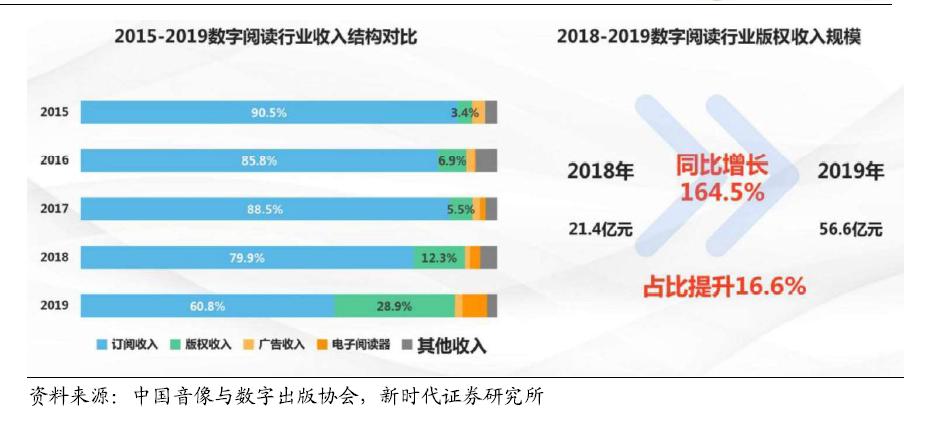 和付费收入的落寞形成鲜明对比的,是版权收入的大幅增长。