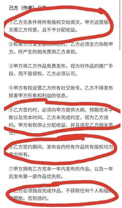 4月27日,有作家发现近期和阅文新签的合同出现变化,他们认为合同条款涉嫌侵犯作家版权和著作权权益,也有网友总结出他们理解的阅文合同的“霸道”之处: