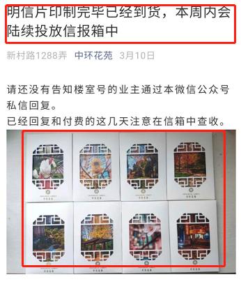 甚至,业委会和业主还特意制作了小区的明信片,鼓励业主通过购买,你可以想象,作为业主,收到这样一套印有小区风景的名片,免不了要发发朋友圈炫耀下,与此同时,对于小区也会产生高度的认同感