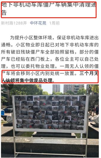 为了解决非机动车库僵尸车辆集中清理问题,物业把每一辆僵尸车辆停放的地点全部都做了公示和告知