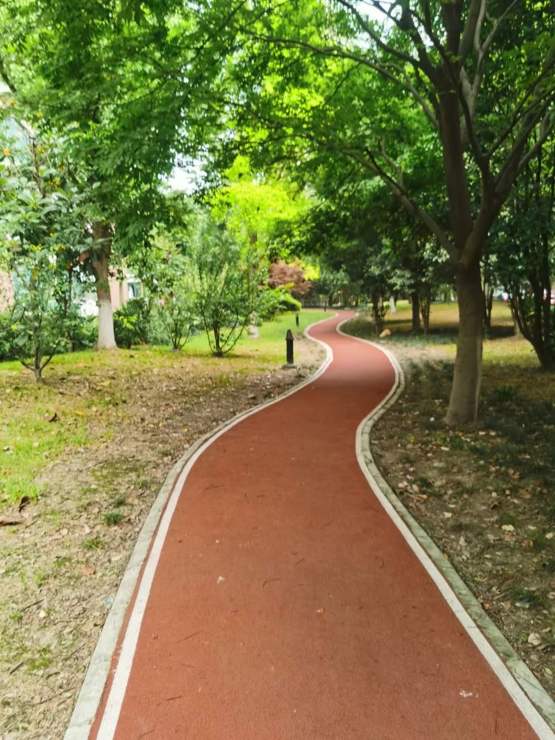 如果你走在小区里面,小区的跑道也是隐藏在这样的绿植中的,你可以想象早晨晨跑时,听着悠悠的鸟叫声,清风拂面,这是怎样的一种晨跑感受