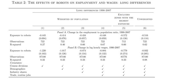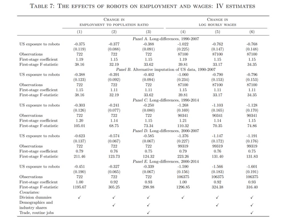 美国工业机器人渗透率的对就业和工资的影响。(没有划分时段)