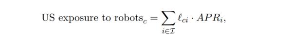 除了这些基础性工作之外,为了方便研究和讨论,文章还构建了不少关键性指标。比如各行业机器人使用率(渗透率)的核心指标:exposure to robots,并通过公式计算出了各行业人均机器人使用量化指标,APR。