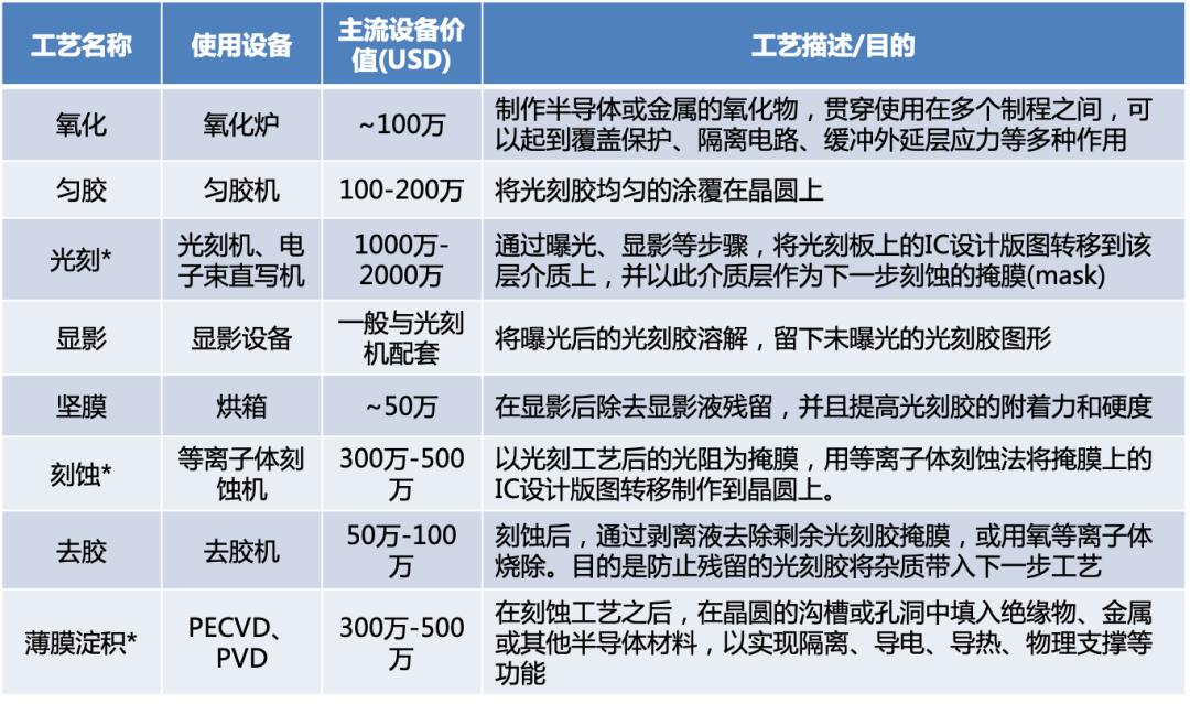 半导体芯片主要制造工艺及对应设备 (1/2)