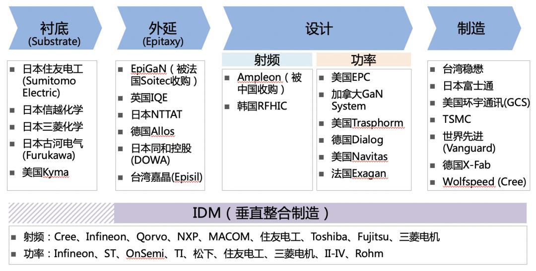 全球GaN器件产业链主要公司