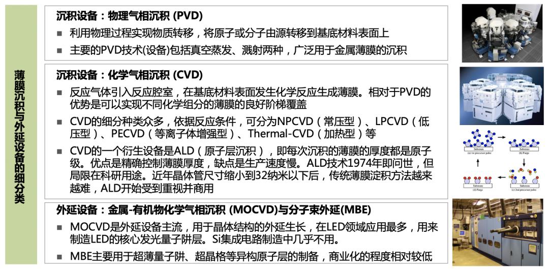 薄膜沉积设备的作用是在基底材料上进行薄膜的沉积,这些不同材料的薄膜构与外延材料一起,构成了芯片的基本材料结构。