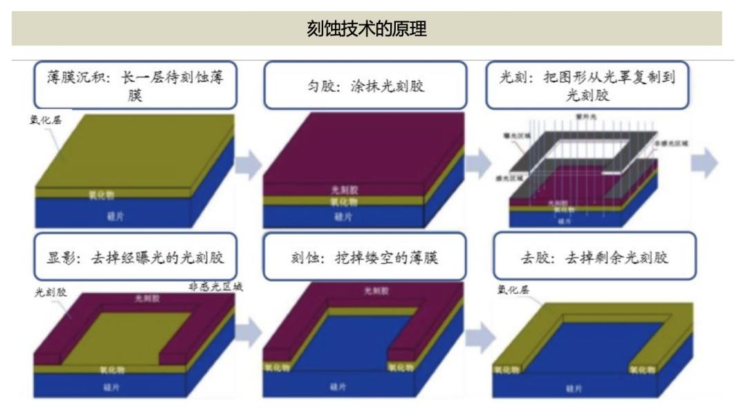 刻蚀是用化学或物理方法有选择地从硅片表面去除不需要的材料的过程。刻蚀的基本目标是在涂胶的硅片上正确地复制掩膜图形。