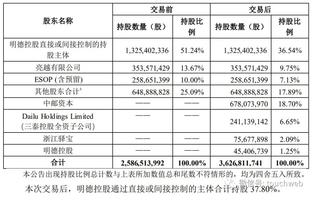 不过,明德控股直接或间接控制的持股主体持股为36.54%,明德控股持股为1.25%,明德控股直接和间接持股为37.8%。