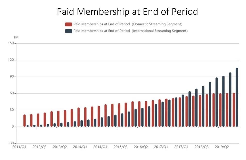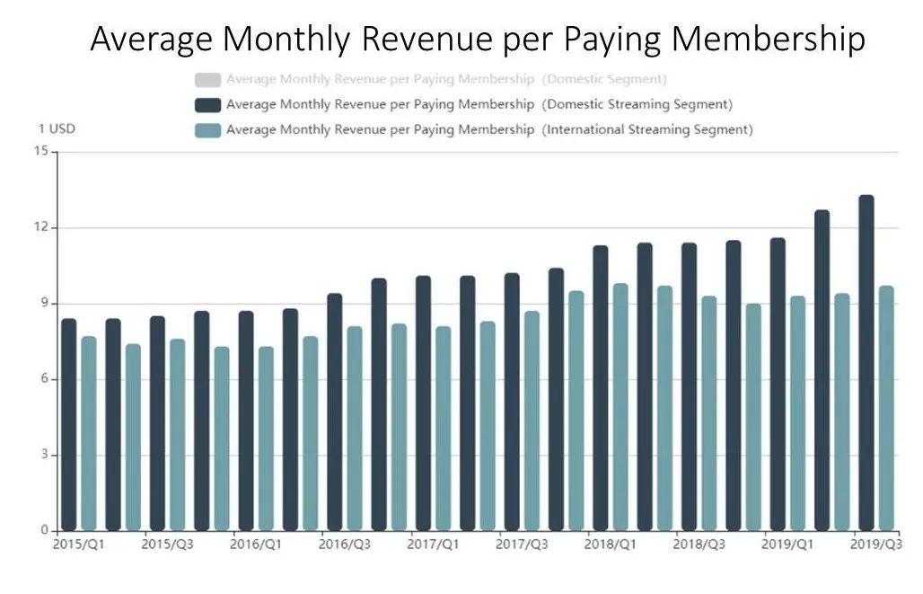 而美国用户平均每月付费金额要高于国际市场,这也和2019年奈飞在美国本土提价有关。
